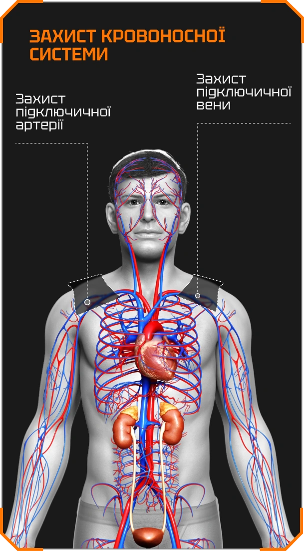 Ключиця — це одна з найуразливіших ділянок верхньої частини тіла, що з’єднує грудну клітку з плечем і захищає життєво важливі судини та нерви. Такий захист призначений убезпечити від уламків, шрапнелі, рикошетів та куль, які можуть потрапити в бійця під час обстрілу або вибухової хвилі.